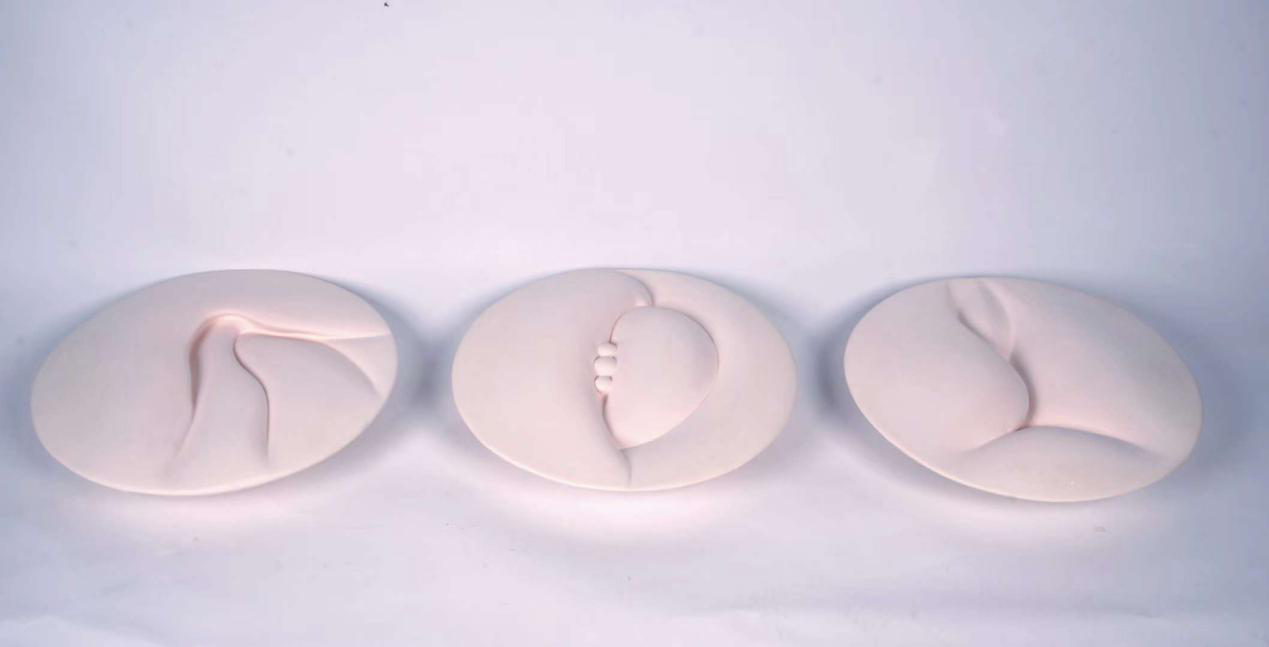 作品介绍:“桃之夭夭,灼灼其华”。曲线之美,莫过于女人体。作品以桃花的粉色作为女人体的肤色,以圆盘如花的形式,用抽象简洁的线条勾勒女人体,给人以美的感官享受。